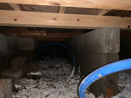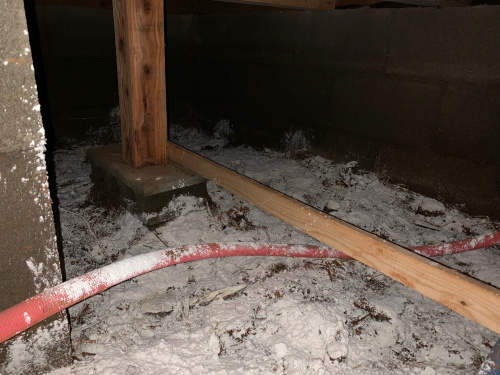 床下浸水した貸家。高さ約50㎝まで水が迫っていた様です...。